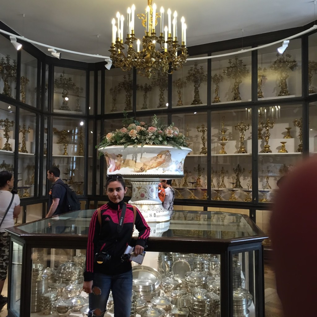Ve arkamızda tüm ihtişamıyla Hofburg Sarayı görünüyor. Viyana’da çok uzun yıllar Habsburg Hanedanı hüküm sürmüş. Bu saray da hanedanın kışlık sarayı. Saray oldukça büyük ve ihtişamlı. İçine girdiğinizde sağda Sisi müzesi, solda ise İspanyol Binicilik Okulu sizi karşılıyor. Ayrıca Sisi müzesinin bittiği yerde de İmparatorluk Daireleri diye ayrı bir müze girişi karşınıza çıkıyor. İşte bu müzelerde o dönemde kullanılan ve saray yaşamının ihtişamını yansıtan mutfak eşyaları, porselenler ayrıca Sisi ve eşinin odaları, Sisi’nin jimnastik odası gibi bazı noktaları geziyorsunuz. Size tavsiyem oraya kadar gitmişken mutlaka bu müzeye girin.