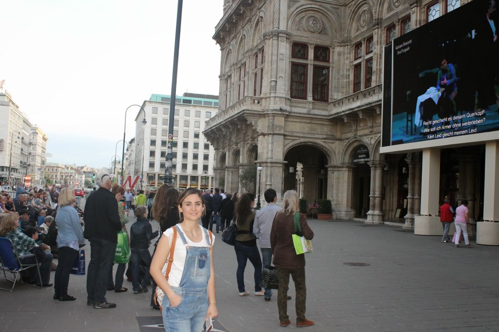 Viyana sanata çok önem veren bir yer. Şehrin her yerinden klasik müzik sesleri yükseliyor. Her yer müze, sanat galerisi. Devlet Opera Binasının önündeki dev ekranda bir opera gösteriliyor ve önündeki platformda yer bulmak mümkün değil.