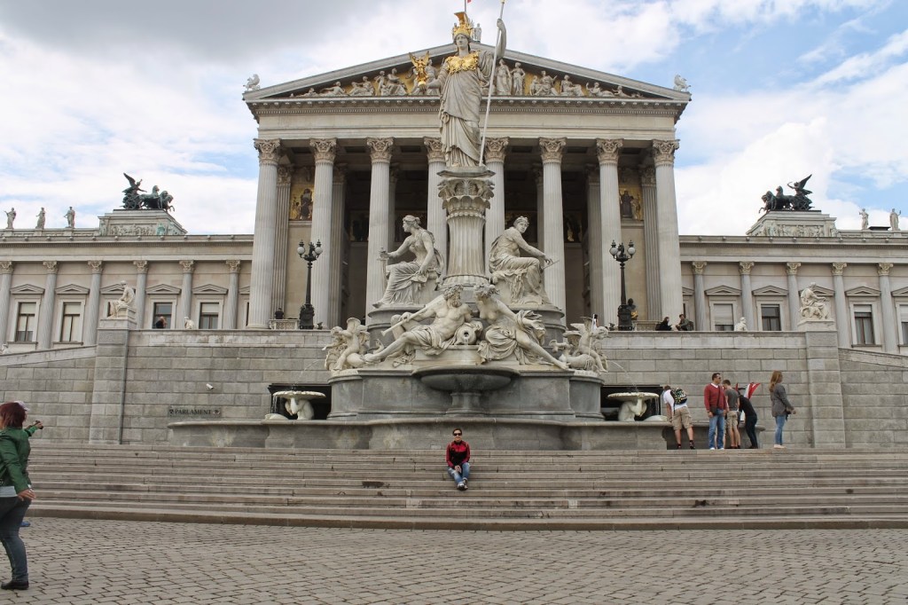 Hofburg gibi büyük bir sarayın bahçeleri de var tabii; Burggarten ve Volksgarten. Volksgarten’in içinde uzun süre Atina’da kalan Theophil Hansen tarafından yapılan tapınak benzeri parlamento bulunuyor.