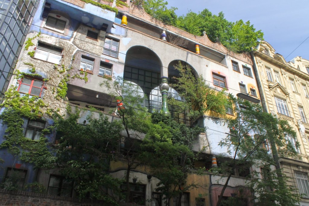 Wien Mitte’deki McDonald’s da dinlenip bir şeyler atıştırdıktan sonra aykırı mimar Hundertwasser’in evine doğru yürümeye başlıyoruz. Hundertwasser evi yaparken binanın hiçbir yerinde düz öğe kullanmamış. Ev rengarenk ve en güzel yanı da balkonların bahçe gibi olması. Düşünün evinizin balkonunda kocaman bir ağaç var. Olmaz demeyin Hundertwasser yapmış, çok da güzel olmuş.