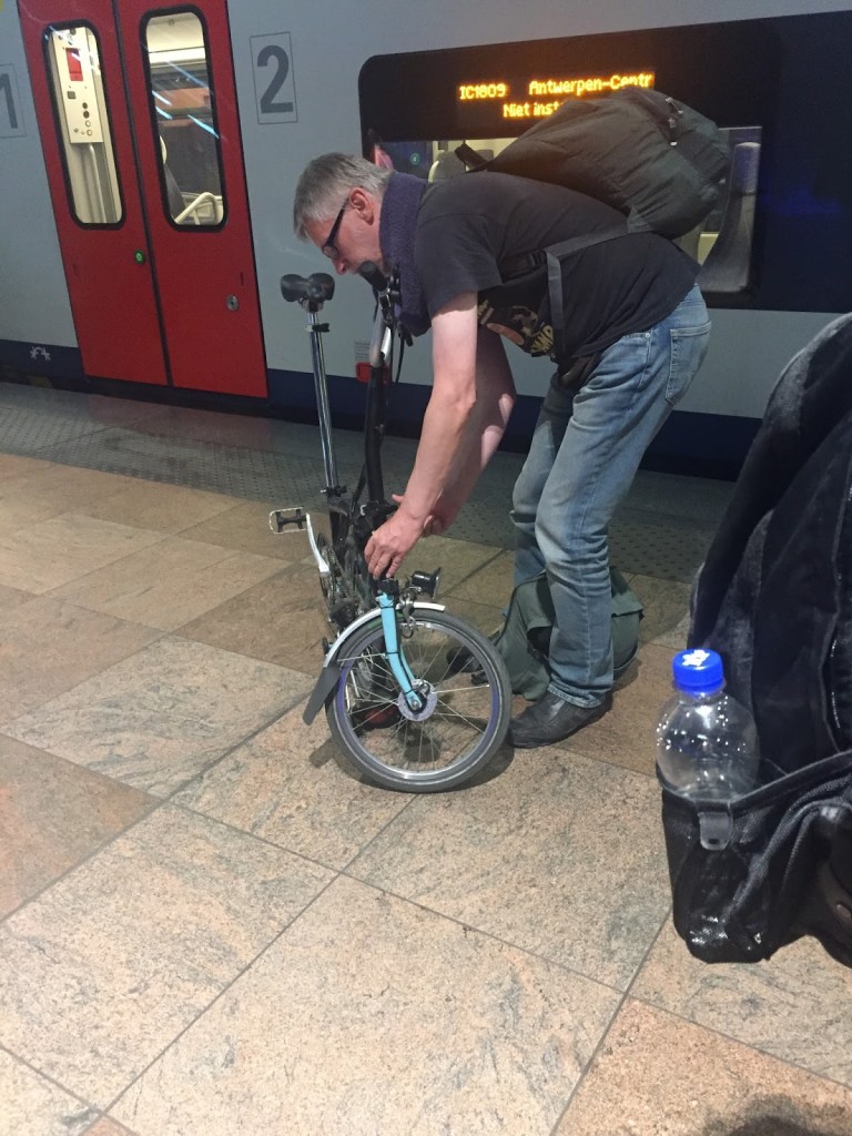 Buralarda bisiklet çok seviliyor. Trene binerken bile bisikletlerini katlayıp çanta gibi taşıyorlar, indiklerinde resimdeki gibi tekrar bisiklet haline getirip kullanıyorlar.
