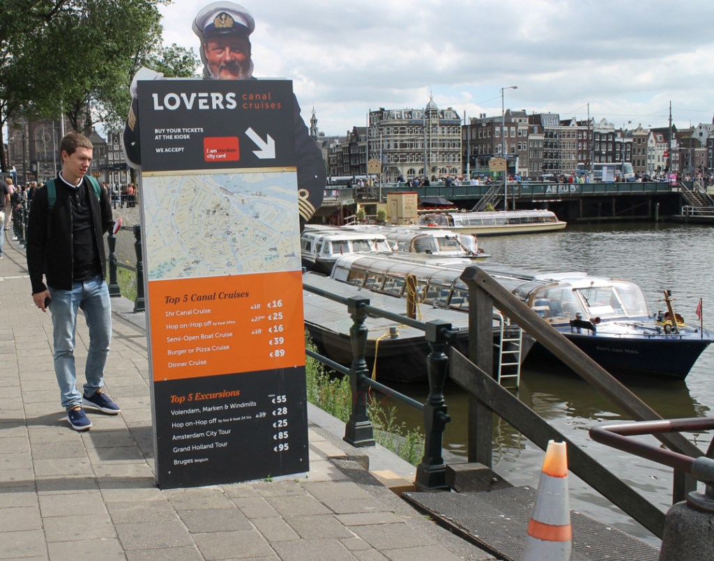 Lovers Kanat Turları içerisinde en çok adını duyacağınız firma. Centraal Station’un hemen karşısında gişesi bulunuyor. Resmi biraz büyütürseniz çeşitli seçenekleri ve fiyatlarını görebilirsiniz.