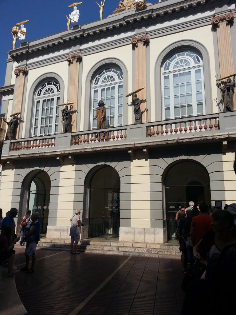 Hemen söyleyelim Figueres’i Figueres yapan Dali Müzesi. Bu müzeyi çıkarırsanız geriye hiçbir şey kalmıyor. Dolayısıyla biz de müzeyi gezip vakit kaybetmeden Girona’ya doğru yol almayı düşünüyoruz. Figueres istasyonundan Dali Müzesi 15-20 dakikalık yürüme mesafesinde. Müzeye erken saatte gittiğimiz için çok uzun bir kuyrukla karşılaşmadık ancak müzeden çıktıktan sonra baktığımda iyi ki de erken gelmişiz dedik, çünkü öğlene doğru müzenin girişinde upuzun bir kuyruk vardı. Kapıda sıra beklemek istemiyorsanız biletinizi gitmeden burayı tıklayarak da alabilirsiniz. Giriş bileti 12 euro. Size 2 ayrı bilet veriyorlar. Bu biletlerden biri Dali Müzesi için, diğeri de Dali Mücevherleri Müzesi için.
