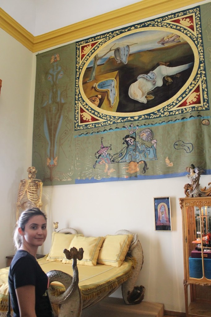 Biraz müzenin tarihinden bahsedelim mi? Salvador Dali 1904 yılında Figueres’de doğmuş. Yine ilk sergisini de 1960 yılında Figueres Belediye Tiyatrosunda açmış. Dönemin belediye başkanı iç savaşta zarar gören belediye tiyatrosunu restore edip müzeye çevirerek Dali’ye tahsis etmiş. Dali de her ayrıntısıyla bizzat kendi ilgilendiği bu müzeyi 1974 yılında açmış. Bu müze günümüzde en büyük Dali koleksiyonuna sahip, 4000’e yakın eseri sergileniyor. Yine müzedeki devasa cam kubbenin altında Dali ve sevgili eşi Gala’nın mezarları bulunuyor. Müze binası da en az sergilenen eserler kadar sıradışı. Bu 4 katlı ilginç müzeyi gezmek için en az 2 saatinizi ayırmalısınız.