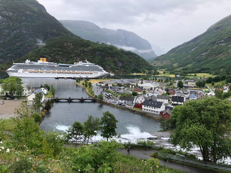Flam çok güzel ve turistik bir kasaba. Öyle ki Flam’a girer girmez sizi Dünya’nın her yerinden gelmiş koca koca Cruise gemileri karşılıyor. İçimizden ‘Küçücük bir kasaba olan Flam acaba neden bu kadar ünlü?’ diye sorduk haliyle. Sebebi şu; Dünya’nın en ünlü tren rotasında giden nostaljik Flamsbana treni ve Dünya’nın en ünlü fiyordu olan Naeroyfjord turu Flam’da yapılacaklar arasında. Dolayısıyla Norveç’te turist olarak bulunan hemen herkesin yolu bu kasabaya mutlaka düşüyor.