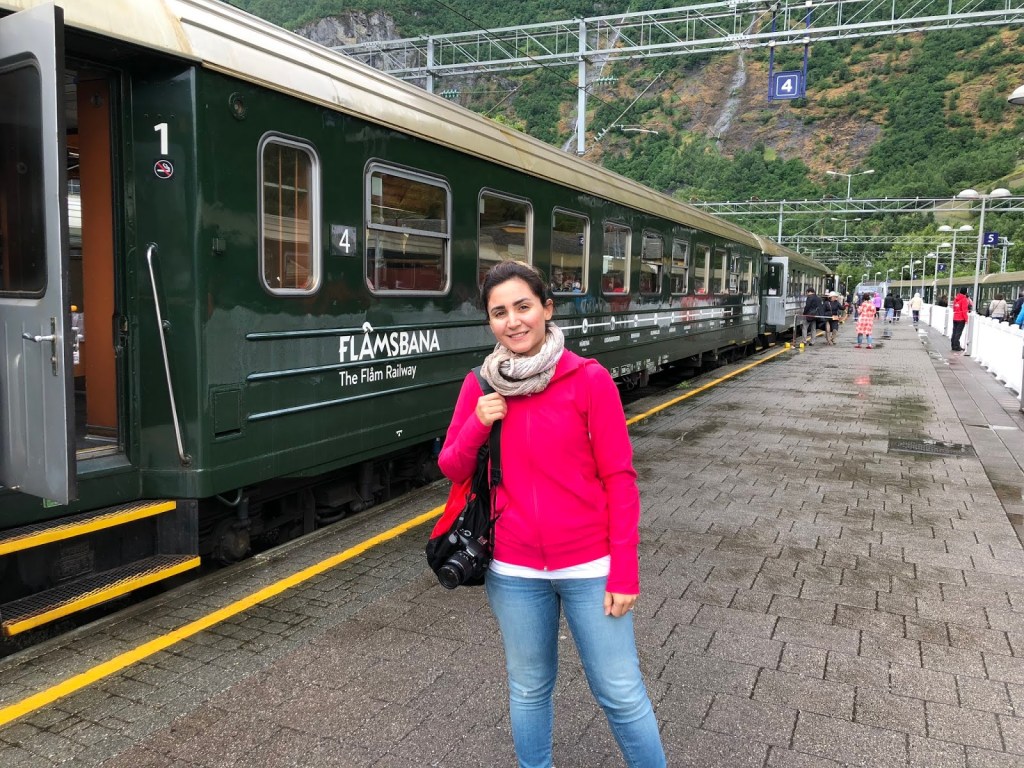 Biz de Dünya’yı keşfetmeye hevesli iki gezgin olarak nostaljik Flamsbana treni ile dillere destan Flam-Myrdal arasındaki yolcuğu gerçekleştirmek için sabahın köründe Flam İstasyonunda hazır ve nazır bekliyoruz. Bu tren yolculuğu Norveç’e ayak basmış her faninin mutlaka gerçekleştirmesi gereken bir aktivasyon. Hatta sırf bu tren yolculuğu için bile Norveç’e gidilir. Bunu söyleyen sadece ben değilim üstelik. Koskoca National Geographic Traveller Flam-Myrdal arasını Dünya’nın en güzel tren rotalarından biri seçmiş, olay resmen tescillenmiş yani. Bu hat Dünya’nın en dik tren hattı. Toplamda 20 km. Yolculuğunuz yaklaşık 40 dk sürüyor, bu sırada el işçiliği ile yapılmış 20 tünelden geçiyorsunuz, hafızanıza kazınacak muhteşem manzaralar görüyorsunuz, yolun yarısında Kjosfossen Şelalesinde kısa bir mola verip dans gösterisini izliyorsunuz en sonunda da yaşadıklarınızdan hipnotize olmuş bir şekilde tren yolculuğunuzu sonlandırıyorsunuz.