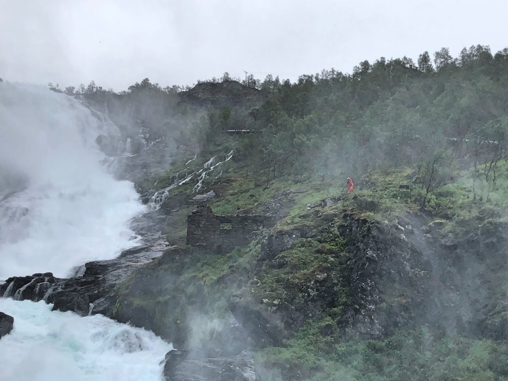Yolculuğunuzun tam ortasında tren Kjosfossen Şelalesinde duruyor. Burada fotoğraf çekip şelalenin hemen yanındaki dans gösterisini izleyebiliyorsunuz.