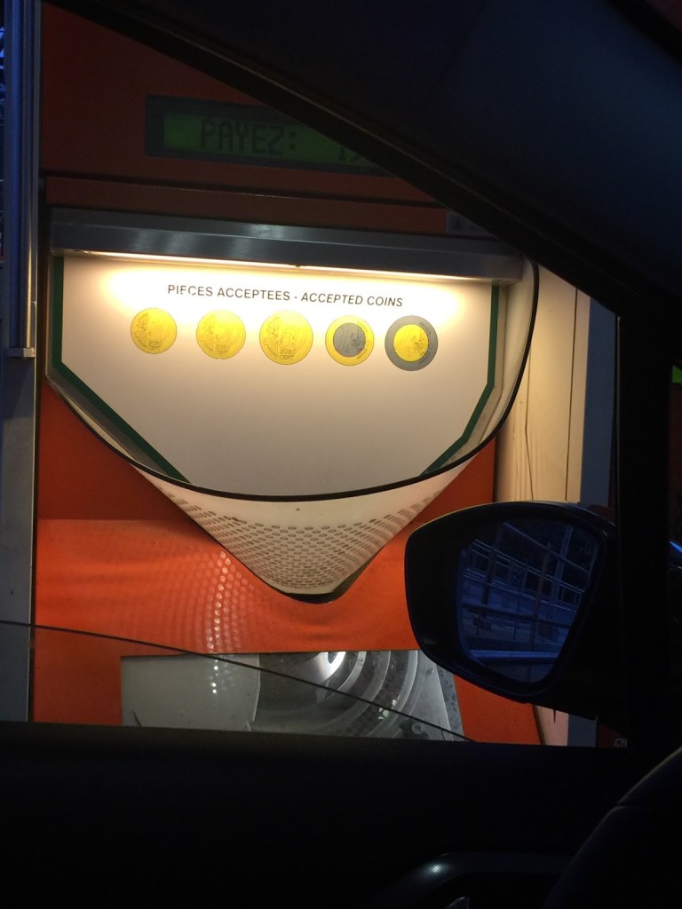 Fransa’da bazı otobanlar ücretli(bu garip şeyle ilk kez Marsilya’ya giderken karşılaştık), ancak gişelere geldiğinizde boşuna görevli aramayın. Arabayla yanaştığınızda huniye benzer tuhaf bir şey göreceksiniz. Buraya bozuk paraları atıp yolunuza devam ediyorsunuz.