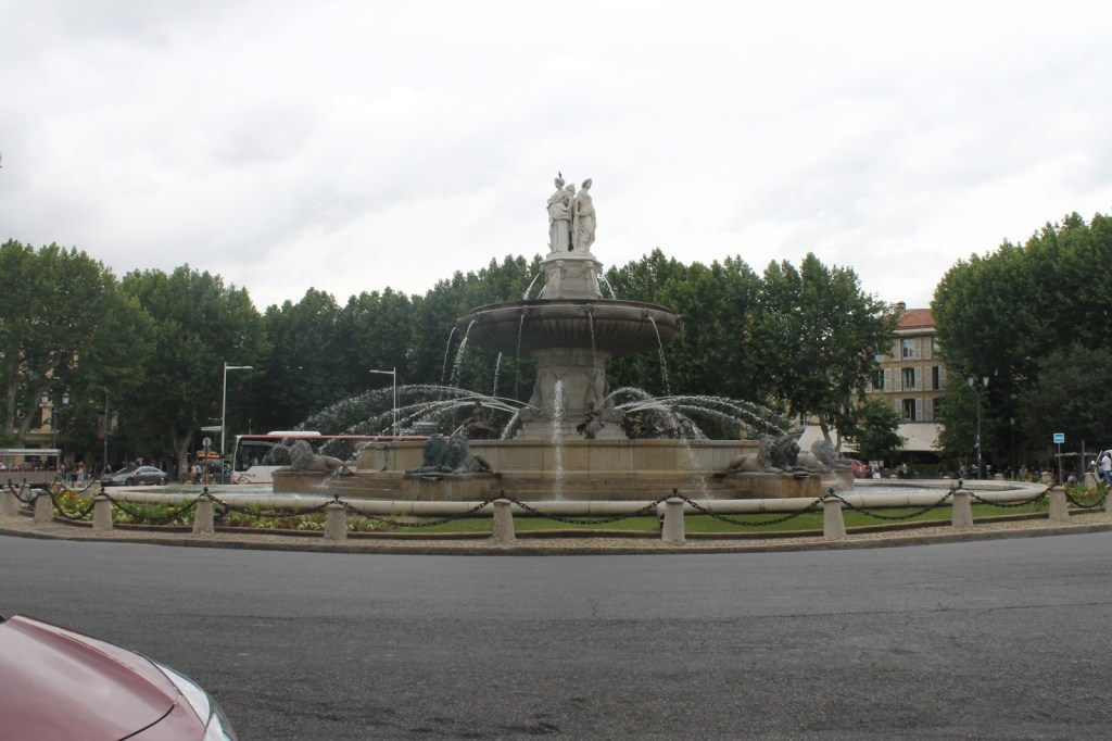 Evet, güzelim köyleri, kasabaları, üzüm bağlarını hayran hayran gezdikten sonra Aix en Provence’ye geçtik. Burası minicik bir yer olmasına rağmen 4 üniversite bulunduruyor. Yurtdışından dil öğrenmek için gelenler de daha çok bu şehri tercih ediyorlar, tam bir öğrenci şehri yani. Hani bazı şehirlerle özdeşleşmiş insanlar vardır ya işte Aix en Provence ile bütünleşmiş olan isim ise ünlü ressam Cézanne. Zaman kısıtlılığından dolayı biz gidememiş olsak da ilginizi çekiyorsa Cézanne’nin resimlerini yaptığı atölye olan Ateiler Cézanne’yi ziyaret edebilirsiniz. Arabamızı park ettikten sonra bizi ilk karşılayan Aix en Provence’nin en meşhur ve en büyük çeşmesi La Rotonde oluyor. Bu çeşme aynı zamanda bulunduğu meydana da ismini veriyor. Ama La Rotonde bu şehirde gördüğünüz ne ilk ne son çeşme. Aix en Provence çeşmeler şehri olarak biliniyor, 200 üzerinde çeşme var bu küçük şehirde. Gerçekten de neredeyse adım başı çeşme bulunuyor.