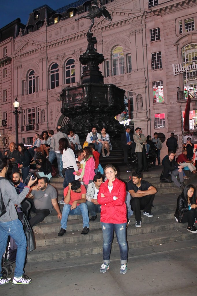 Oxford Street’te şöyle güzel bir gezinti yapıp artık biraz da enerjimizin sonuna gelerek Londra’nın en işlek meydanlarından biri olan Picadilly Circus’a geliyoruz. Burası için Londra’nın Time Square’si derler ama bana Time Square’nin yanında biraz sönük kalmış gibi geliyor. Her taraf ışıl ışıl neon aydınlatmalarla, reklamlarla dolu. Meydanın ortasındaki Eros Heykeli’nin önündeki basamaklarda bizim gibi gezmekten yorgun düşmüş birçok insan yer kapma mücadelesinde. Bu meydanın çevresinde birçok tiyatro, müzikal, cafe, restoran göreceksiniz. Buraya metro ile ulaşmak istiyorsanız Picadilly Circus durağında inmelisiniz.