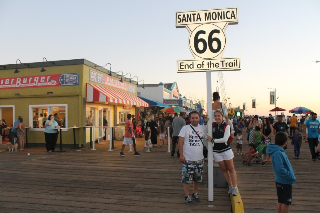 Santa Monica Pier’in ortasında, fotoğraf çektirmek için kısa bir süre sıra beklediğimiz Route 66 yazısı bulunuyor. Route 66 eskiden Chicago’dan Santa Monica’ya kadar dümdüz giden yolun adıymış. Sonrasında bu yol tarih olmuş ama adı hala Santa Monica Pier’de yaşıyor.