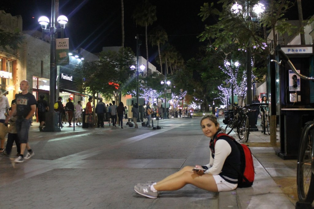 Buraya gelmeden okuduğum yazılarda Promenade’nin bizim İstiklal Caddesine benzediği yazıyordu. Çok fazla İstiklal’e benzetemesem de Promenade araç trafiğine kapalı, sağlı sollu mağazalar ve cafelere ev sahipliği yapan güzel, şık bir cadde. Burada her yerde olduğu gibi içi tıklım tıklım olan kocaman bir Apple Store da bulunuyor. İlginç olan şey ise şuydu, akşam saat 21 gibi Promenade’de olmamıza rağmen caddedeki bir çok mekan kapanmıştı. Dolaşan pek kimse de yoktu sanki. LA seyahatimden anladım ki Los Angeleslılar akşamları ya evlerindeler ya da çok şık mekanlarda, gece klüplerindeler. En turistik yerlerinde bile akşam 21’den sonra pek kimseyi dışarıda göremiyorsunuz.