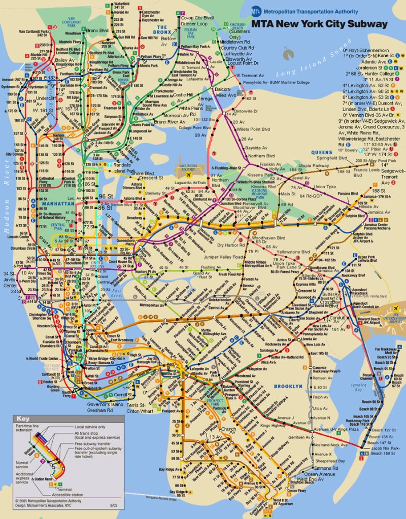 NYC gibi koca bir metropolde kolaylıkla gezebilir miyiz diye kaygılanıyorsanız şimdiden söyleyelim ki boşuna. Adeta cetvelle çizilmiş bu şehirde kaybolmak için özel bir çaba sarfetmeniz gerekiyor. Haritaya baktığınızda yatay olarak görülen numaralar “street”, dikey olarak görünenler ise “avenue”leri gösteriyor. Zaten her köşe başında kaçıncı street ve avenuede olduğunuzu gösteren tabelalar bulunuyor. Sokak numaraları arttıkça Central Park ve Upper East bölgesine doğru gitmiş oluyorsunuz, azaldıkça da Lower East bölgesine yani aşağı Manhattan’a gitmiş oluyorsunuz.