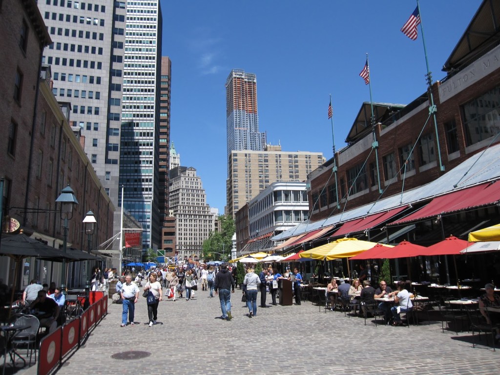 Bir diğer durağımız South Street Seaport. Burası New York’un o koca koca gökdelenlerinden kaçabileceğiniz şirin bir rıhtım alanı. Caddeler araç trafiğine kapalı. Oturup dinlenebileceğiniz, bir şeyler atıştırabileceğiniz birbirinden güzel, sevimli mekanlar var. Yine gezmek isterseniz rıhtımda bir de AVM bulunuyor. Dediğim gibi burası New York’un çoğuna göre sıkıcı gelen (ama nedense bana hiç de öyle gelmeyen) boğucu havasından kaçmak için iyi bir yer. Daha önce Time Square’yi anlatırken Brodway müzikalleri için ucuz bilet bulabileceğiniz TKTS gişelerinden bahsetmiştim. İşte bir diğer gişe de South Street Seaport’ta, aklınızda bulunsun.