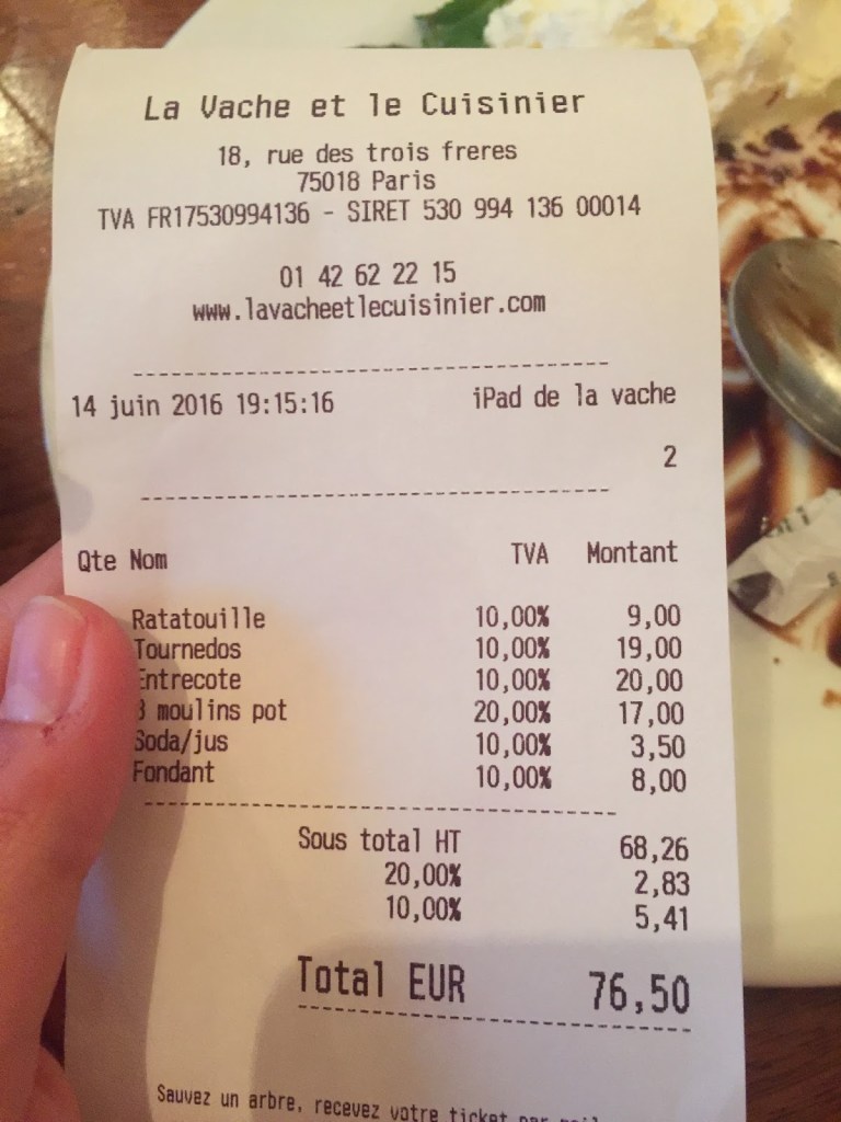 Bir diğer tavsiye edebileceğim restoran ise Montmartre’de, La vache et le cuisinier. Buranın küçücük bir yer olduğuna bakmayın sakın harika ızgara et yapıyorlar. Fiyatlar da çok abartı değil, ortalama.Buranın özellikle Ratatouillesi meşhur. Bence de harikaydı mutlaka denemelisiniz. Adres; 18 Rue des Trois Fréres, 75018 Paris.