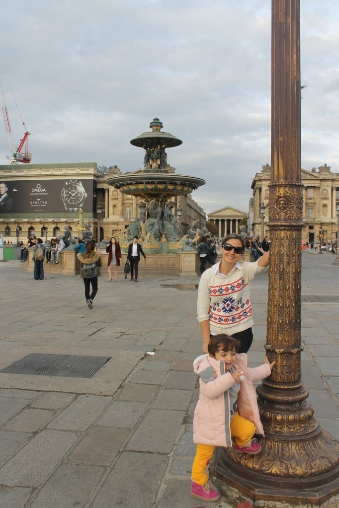 Tuileries Bahçelerinin bir ucunda Louvre Müzesi diğer ucunda ise Fransa’nın en büyük 2. meydanı olan Concorde Meydanı bulunuyor. Concorde Meydanı ise Paris’in ünlü caddesi Champs-Elysées’nin başlangıç noktası. Kısacası Concorde için Paris’in en merkezi noktalarından bir tanesi diyebiliriz. İnanılmaz derecede büyük bir meydan, daha önce hiç bu kadar büyüğünü görmemiştik açıkçası. Bu meydan 1792 yılında çıkan olaylar nedeniyle, aralarında Fransız kralı 16. Louis ve eşi Marie Antoniette’nin de bulunduğu yüzlerce kişinin giyotinle idamına da tanıklık etmiş. Tarihi pek de hoş olmayan Concorde’u şu anda Luksor tapınağından getirilen 23 metrelik bir dikilitaş ve etrafındaki çeşitli heykeller, çeşmeler süslüyor. Ayrıca zaman zaman kurulan bir de dönme dolap bulunuyormuş ama bizim gittiğimiz dönemde kaldırmışlardı, göremedik. Buraya direkt metro ile gelmek isterseniz Concorde durağında inmelisiniz.