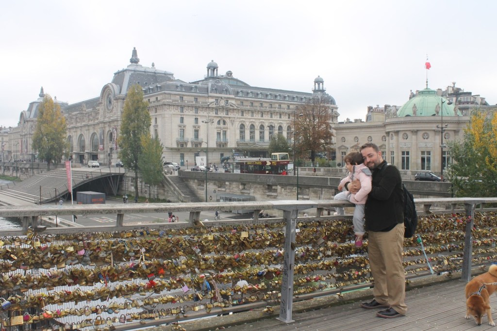 Seine Nehri üzerinde tam 37 adet köprü bulunuyor. Bunların içerisinde en merak edileni Louvre Müzesinin hemen yanındaki Pont des Arts yani Aşıklar Köprüsü’dür diye düşünüyorum. Burası araç trafiğine kapalı bir köprü. Aşıklar buraya gelip kilit asıyorlar ve aşkları ölümsüz olsun diye de anahtarını nehre atıyorlar. Köprüye kilit asmak ilk kimin aklına gelmiş, niye yapmış bilmiyoruz. Ancak zaman içinde aşık çiftler durumu o kadar abartmış ki köprüde kilit asılacak yer kalmamış. Hatta kilitlerin ağırlığı nedeniyle korkulukların telleri kopmaya başlayınca Paris Belediyesi korkulukları ahşap plakalarla kaplamış. Şu anda sadece köprünün giriş ve çıkış bölümünde kilitler var. Aslına bakarsanız köprüye kilit asma geleneği sadece bu köprüye has bir şey değil. Diğer köprülerde de (bu kadar yoğun olmasa da) asılan kilitler gördük. Anlaşılan Paris’teki aşıklar kilit asmak için köprü ayrımı yapmıyorlar, onlara her yer Pont des Arts.