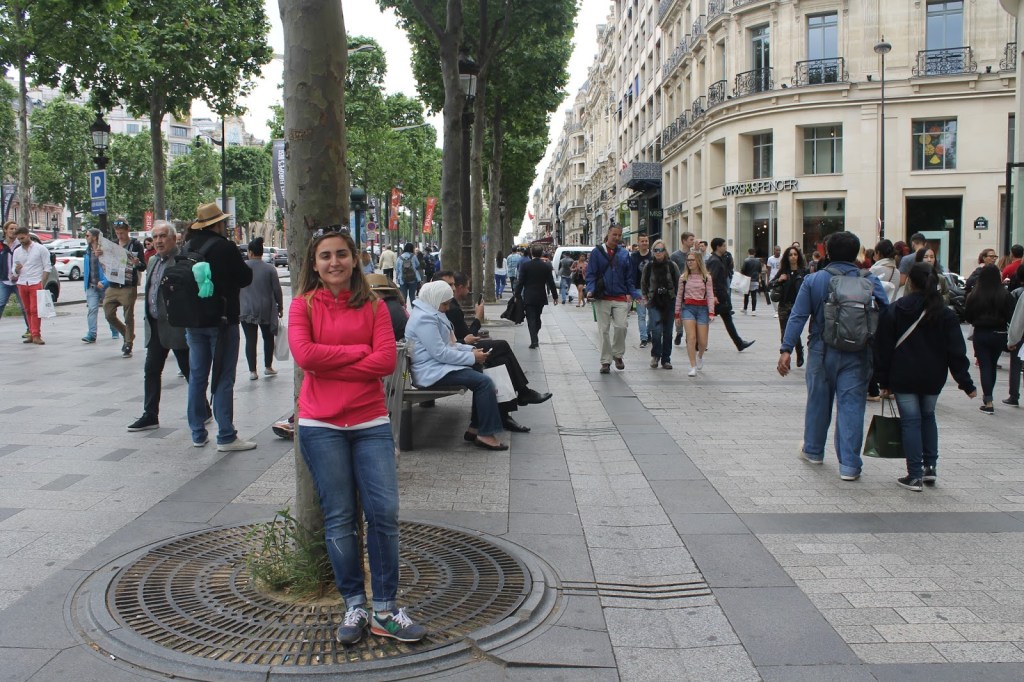 Ve gezdik gezdik en sonunda Champs-Elysées’e (türkçe söyleyecek olursak Şanzelize) geldik. Burası Concorde Meydanı ile Arc de Triomphe yani Zafer Takı’nın bulunduğu Place Charles de Gaulle arasında uzanan 2 km lik bir bulvar. Artık Türkiyeye döndüğümüzde biz de Champs-Elysées’de turladık diye hava atabiliriz. Nedendir bilmem ama bana bu cadde her zaman çok havalı gelmiştir. Aslına bakarsanız çılgınca alışveriş yapabileceğiniz ünlü mağazaların,birbirinden güzel cafelerin bulunduğu, daha önce de benzerlerini gördüğümüz kocaman bir cadde. Ama başta da dedim ya apayrı bir havası var işte. Az önce dediğim gibi Champs-Elysées, Paris’in diğer bir simgesi olan Arc de Triomphe yani Zafer Takı’nda son buluyor. Champs-Elysées için Charles de Gaulle – Étoile, George V, Franklin D. Roosevelt, Champs-Élysées – Clemenceau metro duraklarının herhangi birini kullanabilirsiniz.
