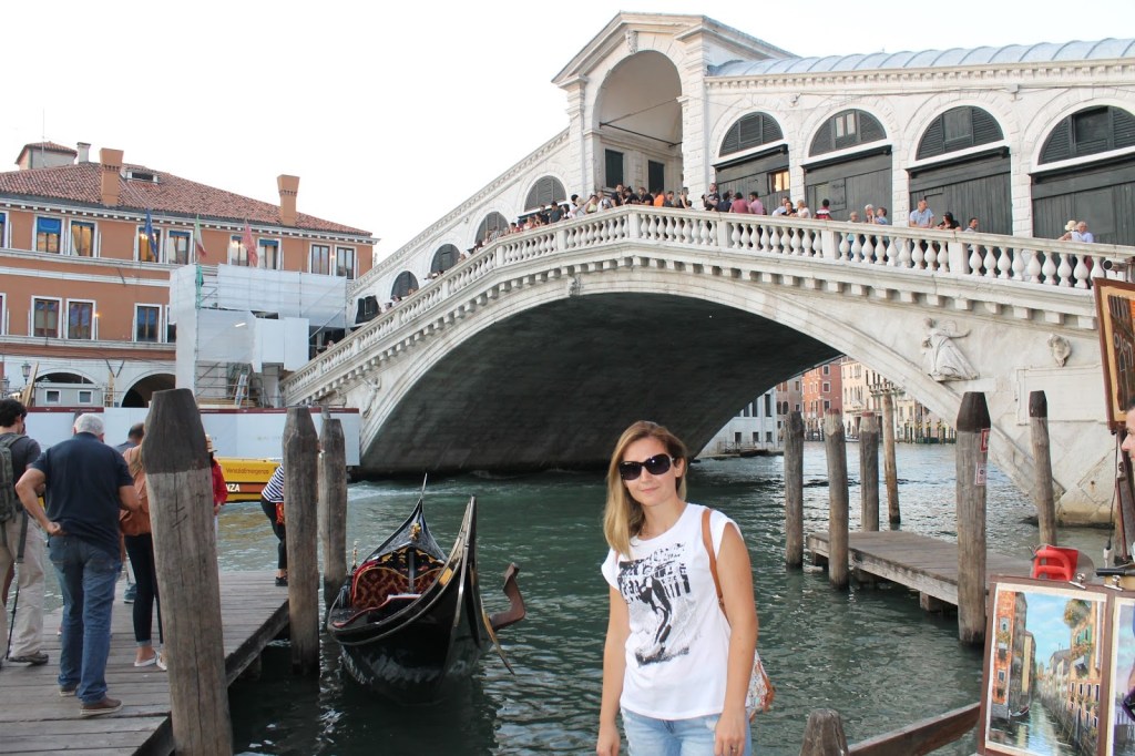 Venedik’teki ilk durağımız Venedik’in simgelerinden biri olan meşhur Rialto Köprüsü oldu. Grand Canale üzerindeki 4 köprünün en eski ve en ünlü olanı. Yapımı 16. yy’a dayanıyor. Yalnız umarım zamanında köprüyü sağlam yapmışlardır çünkü köprü günün her saatinde turistle dolup dolup taşıyor. Üzerinde sürekli bir insan yığını var. Köprünün en üst noktasında harika bir Grand Canale manzarası var. Bu noktada fotoğraf çektirmek için uzun bir sıra beklemek zorunda kalabilirsiniz. Köprüde hediyelik eşya satan bir çok dükkan var. Ancak buralardan bir şey almak için çok kendinizi kasmayın çünkü Venedik’in neredeyse tamamı hediyelikçilerden oluşuyor zaten. Başka yerlerde daha uygun fiyatlara daha güzel şeyler alabilirsiniz.