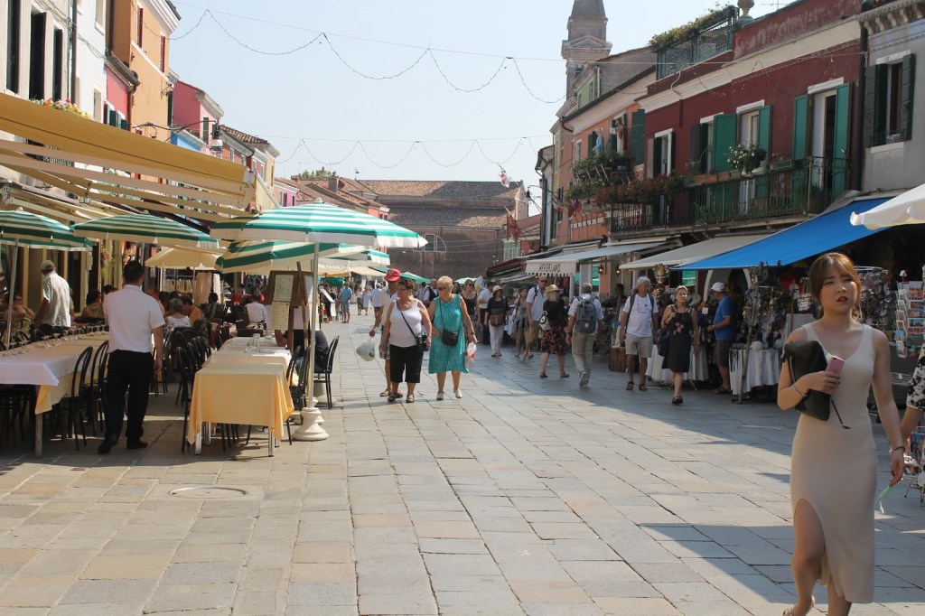 Rengarenk evleri ile Burano çok şirin görünüyor. Yalnız turistin bu kadar yoğun bir yer olmasına rağmen ilginçtir ki çoğu dükkan günün belli saatlerinde kapalı, çalışmıyor. Öğlenin o sıcağında bir su alacak dükkan bile bulamadık.