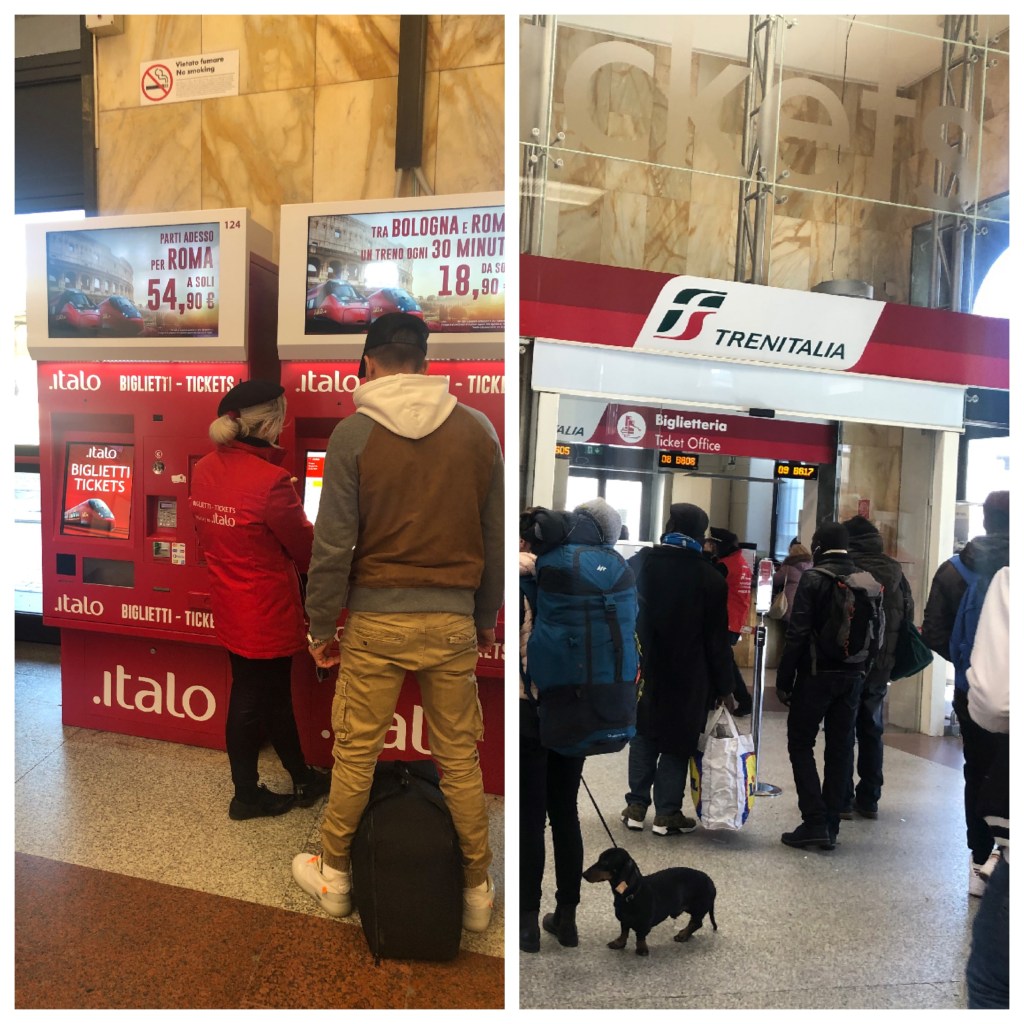 İtalya’da hızlı tren seferleri düzenleyen iki firma var; devlete ait Trenitalia ve NTV firmasının hızlı treni Italo. Üzerlerine tıklayarak online olarak bilet alabilirsiniz. Bunun yanında istasyonlardaki gişelerden ve bilet otomatlarından da bilet alınabiliyor. Tabi trene binip inerken biletlerimizi makinelerde validate etmeyi unutmuyoruz.