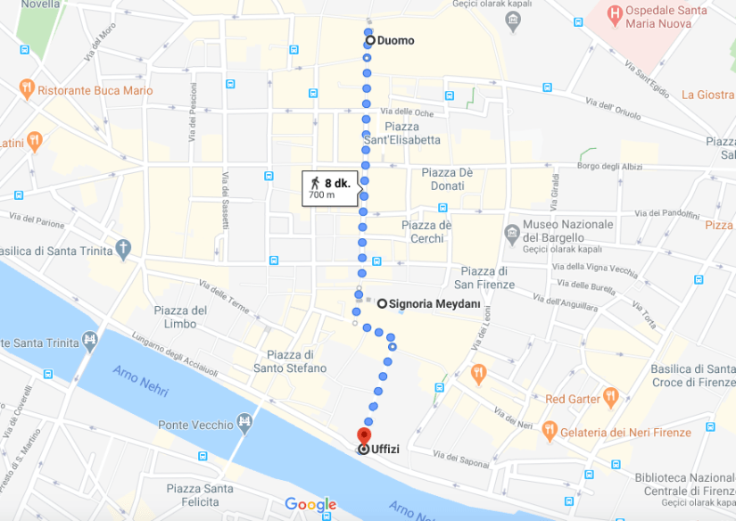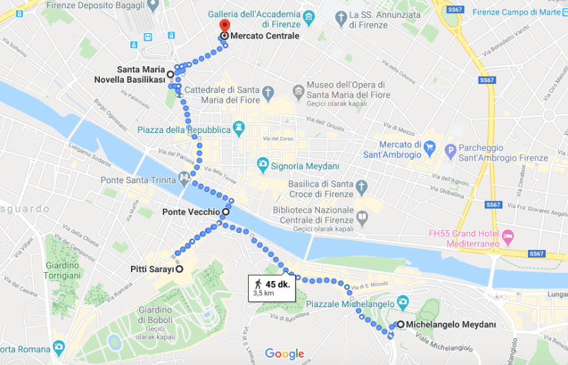 Bizim Floransa gezimiz bu kadar. Floransa, ne kadar zaman ayırsanız da hep ‘keşke 1-2 gün daha fazla kalsaydım’ diyebileceğiniz şehirlerden. Benim 1 günüm daha olsaydı Galleria Della Accademia’ya gitmek, Uffizi’deki muhteşem manzaralı terasta kahve içmek ve o muhteşem Fiorentina bifteğinden bir kez daha yemek isterdim. Ama bunların dışında size anlattığım rota da Floransa için gayet yeterli. Siz yazımı okurken biz de yavaş yavaş Pisa için yola çıkalım. Görüşmek dileğiyle…