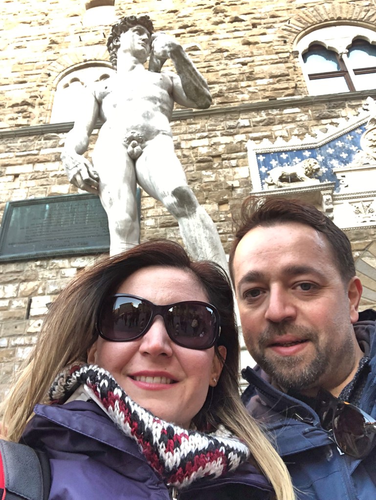 Duomo Meydanı’na akşam tekrar dönmek üzere veda edip Via dei Calzaiuoli’den yürüyerek Floransa’nın bir diğer önemli noktası Signoria Meydanı’na geçiyoruz. Via dei Calzaiuoli, Duomo Meydanı ile Signoria Meydanı’nı birbirine bağlayan oldukça tarihi, turistik ve yürümesi de hayli zevkli bir alışveriş caddesi. Gelelim Signoria Meydanına. Tarih boyunca, Duomo Meydanı şehrin dini merkezi, Signoria Meydanı ise siyasi ve sosyal merkezi olmuş. Önemli siyasi olaylar, protestolar, toplantılar hep bu meydanda gerçekleşmiş. Günümüzde ise Floransa’nın açık hava müzesi durumunda. Bir çok ünlü heykel burada sergileniyor. Bunların en ünlüsü de tabii ki Michelangelo’nun Davud heykeli. Daha önce Roma’da ve şimdiyse Floransa’da karşımıza çıkan erotik temalı buzdolabı magnetlerinin öznesi olan heykel kendisi. Evet İtalya’da her yerde gördüğünüz penis işte bu heykele ait. Yalnız heykel burada dedim diye hemen sevinçten havalara uçmayın. Koskoca Davud’u yedi yolun ortasına koyacak halleri yok tabii ki, sergilenen Davud, orijinalinin birebir kopyası. Ama üzülmeyin gerçek Davud da Floransa’da, Galleria Della Accademia’da bulunuyor.