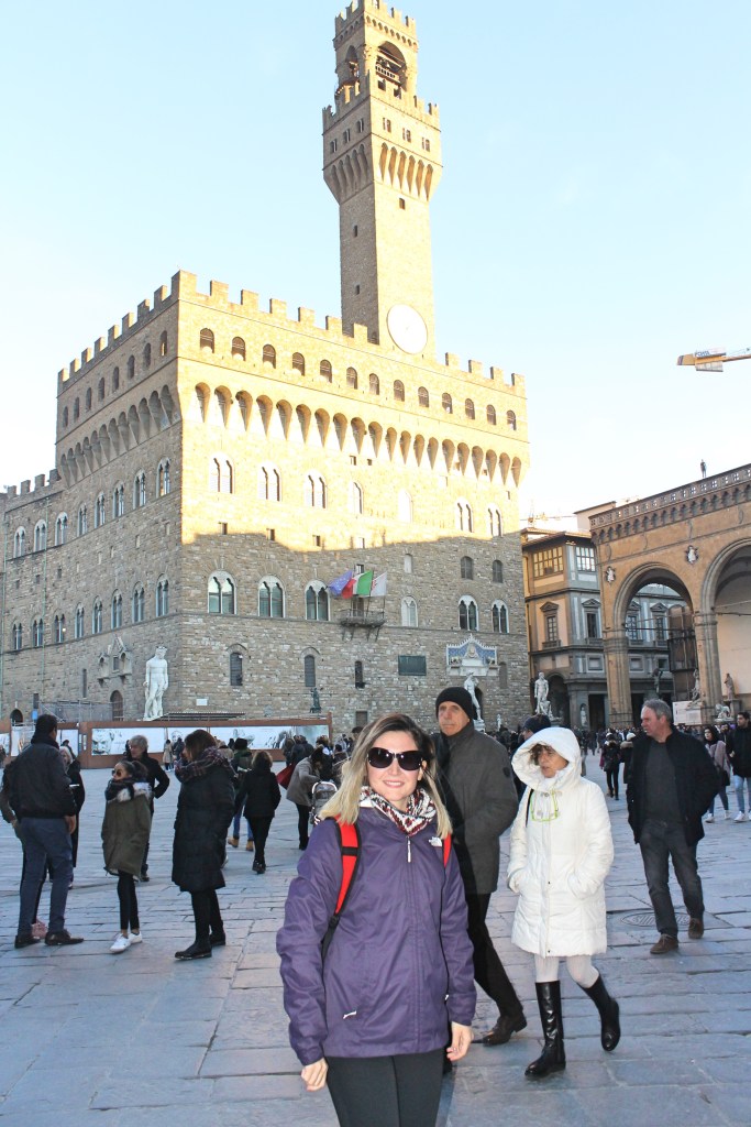 Meydanda, önünde Davud Heykeli bulunan saray Palazzo Vecchio. Aslında saray 1299 yılında yapıldığında ismi Palazzo Signoria imiş. Sonrasında ünlü Medici ailesi sarayı almış ve konut olarak 1550 yılına kadar kullanmış. Aile nehrin karşı tarafındaki Palazzo Pitti’ye taşınınca burası önemini kaybetmiş, adı da Eski Saray anlamına gelen Palazzo Vecchio olarak değişmiş( vecchio italyancada eski anlamına geliyor). Saray günümüzde önemli sanat eserlerinin sergilendiği bir müze olarak kullanılıyor. İçindeki eserler kadar Michelangelo, Vasari, Bronzino gibi ustaların elinin değdiği iç dekorasyonu da oldukça meşhur. İsterseniz sarayın kulesine de çıkabiliyorsunuz. Sarayın girişi 12,5 euro. Burayı tıklayarak biletinizi online alabilirsiniz.