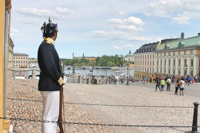 Gamla Stan’daki önemli yerlerden bir diğeri de Kraliyet Sarayı (Kungliga Slottet). Burası aslında ‘Tre Kronor’ isimli kalenin 1697 yılında yanması ile aynı alana italyan barok tarzında inşa edilmiş bir saray. Sarayın tam olarak bitmesi 63 yıl sürmüş. 1430 odası bulunan bu devasa sarayın sadece 660 ında cam bulunuyor. Günümüzde İsveç Kraliyet ailesinin ikamet yeri olarak kullanılıyor. Ayrıca içerisinde 5 farklı müze alanı yer alıyor. Saraydaki askerilerin geçit töreni ve nöbet değişimleri de oldukça turistik ancak bizim ilgimizi hiç çekmeyen aktivitelerden. Buckingham Sarayı’nda iki saat beklediğimiz gereksiz nöbet değişimi ritüelinden sonra bu etkinliklere oldukça mesafeli bakıyoruz. Sarayın girişi 200 SEK yani 17.50 euro.