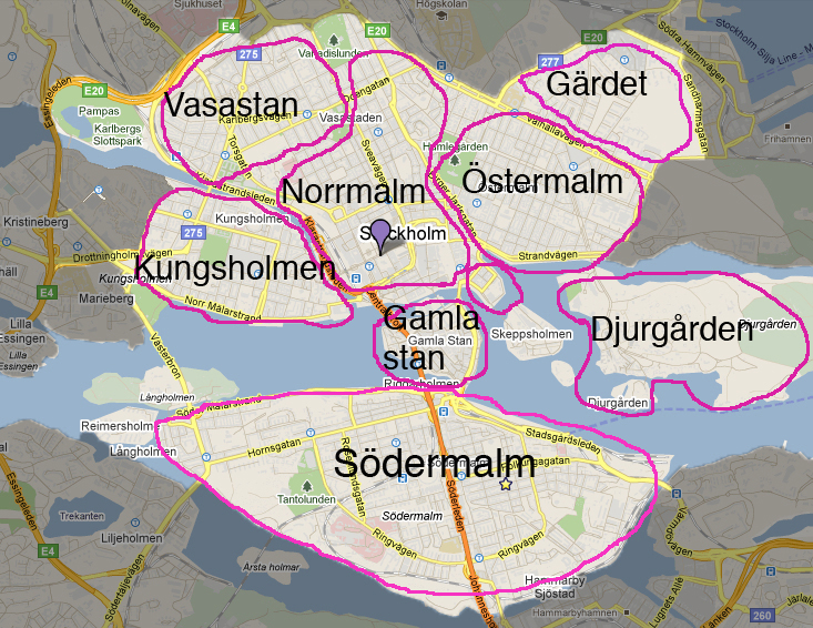 Biz Stockholm için sadece 24 saat ayırabildik ama daha önce de söylediğim gibi aslında 2-2,5 günü hakeden bir şehir. Bu şehirde konaklamanın hayli pahalı olduğunu söylememe gerek bile yoktur sanırım. Aşağıdaki haritada Stockholm’ün bazı bölgelerini görüyorsunuz.