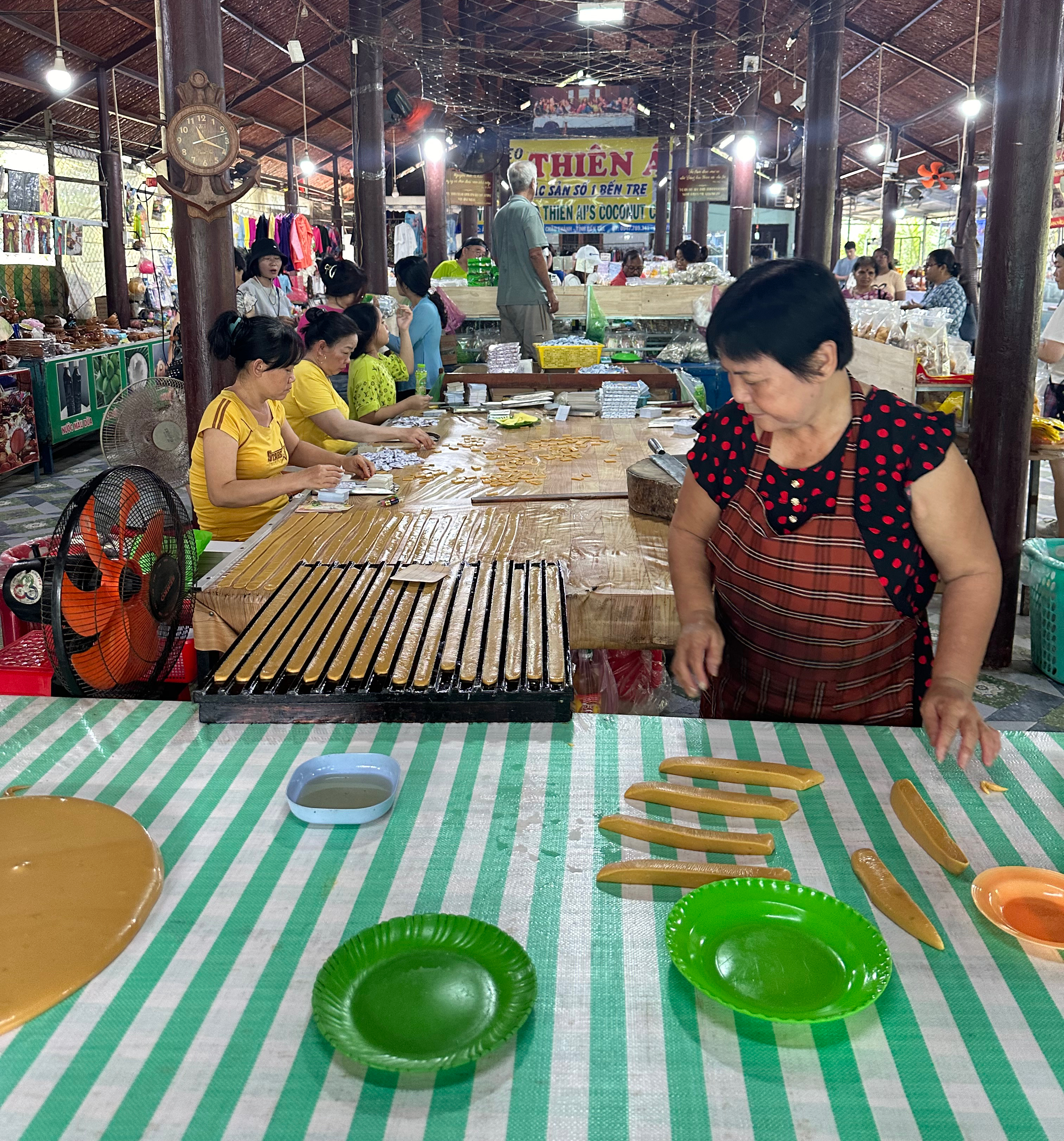 Az önce bahsettiğim gibi My Tho şehrinde bindiğimiz tekne ile ilk olarak Coconut Island’a geçiyoruz. Her ne kadar memleket olarak Hindistan Cevizi ile münasebetimiz Survivor yarışması ile sınırlı olsa da, Coconut Vietnam’da her şey demek. Bu meyvenin her şeyinden ama her şeyinden faydalanıyorlar. Hindistan Cevizinin kabuğunu, kenarını, kıyısını çöpe at diye bir olay yok asla. İlla ki ondan bir şeyler çıkarıyorlar. İşte bu adada Hindistan Cevizinin şekilden şekile girmesini bizzat görebiliyorsunuz.