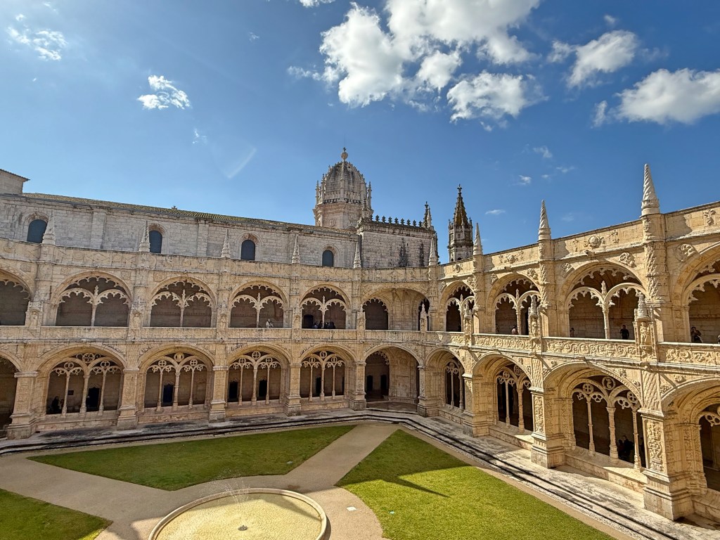 Belem’deki ilk durağımız UNESCO Dünya Mirası Listesi’ndeki Jeronimos Manastırı. Geç Gotik ve Rönesans tarzlarının karışımından oluşan Portekiz’e özgü Manuelin tarzının tipik bir örneği olan manastırın yapımı 100 yıldan fazla sürmüş. Söylenene göre, manastırın inşası her yıl 70 kg altına mal oluyormuş ve bu da Baharat Ticaretinden elde edilen gelirle finanse edilmiş.