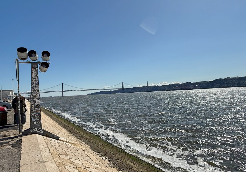 Belem’de nehir kenarına geldiğinizde karşıdan görünen San Fransisco’nun Golden Gate Köprüsü’nün tıpkısının aynısı olan köprü 25 Nisan Köprüsü. Bu köprü Lizbon ile Almada’yı birbirine bağlıyor. Köprü ilk yapıldığında adı Salazar Köprüsü imiş. Ancak 25 Nisan 1974 yılında yapılan Karanfil Devrimi ile Salazar devrilince köprünün adı devrimin anısına değiştirilerek 25 Nisan olmuş.