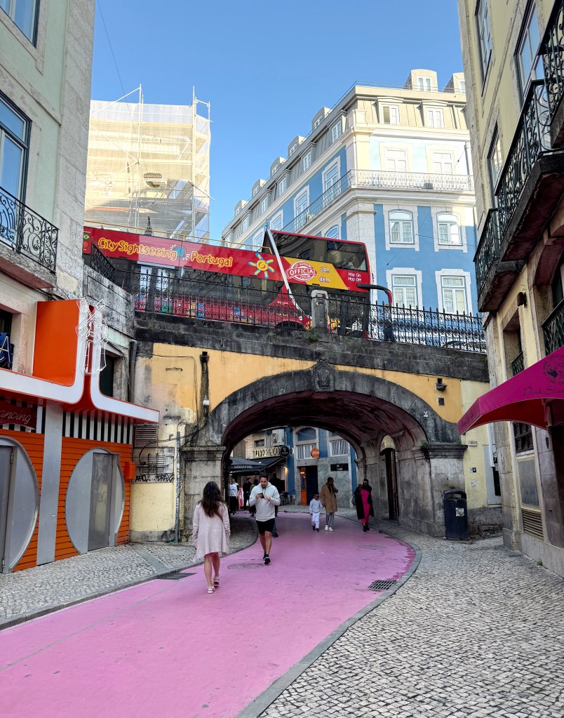 Eskiden daha çok denizcilerin ve işçilerin gittiği, ‘kötü şöhretli’ ya da ‘alt tabaka’ bir bölgeyken zamanla dönüştürülüp Lizbon gece hayatının merkezi haline gelmiş. Pink adını, yere boyanan parlak pembe yol zemininden alıyor. Daha çok pub, gece klübü gibi mekanlar bulunuyor. En ünlü mekanı eski bir genelevden dönüştürülen ve retro erotik tarzıyla dikkat çeken Pensao Amor. Pink Street, Time Out Market’e çok yakın bulunuyor. Gece çok karman çorman bir yer olduğundan size önerim güzel fotoğraflar için sabah saatlerinde gelmeniz.