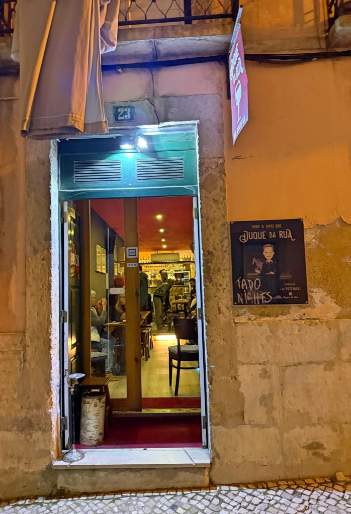 Lizbon’da Fado dinleyebileceğiniz birçok mekan var. Bazı Fado dinletileri kocaman salonlarda restoran konseptinde oluyor. Ama Fado mekanları genellikle küçücük nostaljik bir ortamda, loş ışık altında şarabınızı yudumlayarak sırasıyla sahneye çıkan sanatçıları dinleyebileceğiniz yerler. Sahne dediğim de restoran kapısının önü, özel bir alan değil yani. Genellikle gece boyu 5-6 farklı sanatçı sürekli değişerek şarkı söylüyor. Fado dinlerken çok sessiz olmanız gerekiyor. Zaten hafiften bir ses çıkarın ya da performans esnasında telefonunuzu kurcalayın hemen ‘şşttt’ diyerekten uyarıyorlar. Fado’yu edebinizle dinlemeniz gerekiyor yani. Bizim tercih ettiğimiz mekan ise Duque da Rua idi. Buranın avantajı şu; hem çok iyi sanatçılar sahne alıyor hem de diğer mekanlar gibi fix menü çalışmıyor, aldığınız kadarını ödüyorsunuz. Bu arada burada yemek yok. Şarap yanına peynir veya meyve tabağı gibi aperatif şeyler alabiliyorsunuz. Mekan küçücük tıkış tıkış ama müzik gerçekten çok iyi. Duque da Rua’yı tavsiye ederim.