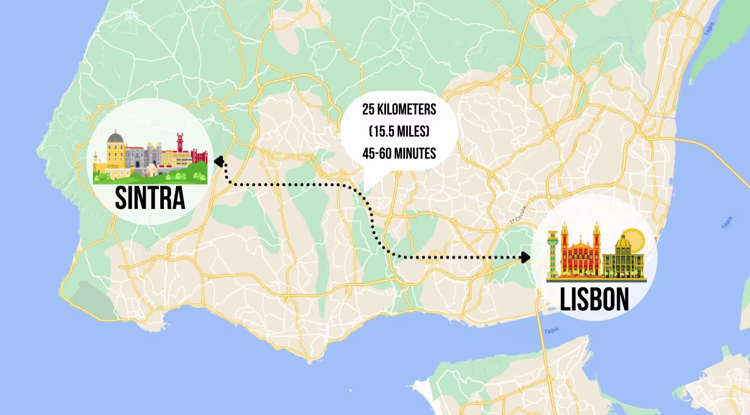 Sintra-Cascais: Sintra Tren İstasyonu önünden kalkan 403 no’lu otobüsü kullanarak yaklaşık 50 dakikada Cascais’e ulaşabilirsiniz. Bilet fiyatı 4.5 euro. Otobüs iki önemli avantaj sağlıyor. Birincisi yol boyu harika okyanus manzaraları sunuyor. İkincisi ise Avrupa’nın en batı noktası olan Cabo da Roca’dan geçiyor. Eğer vaktiniz varsa Cabo da Roca’da kısa bir tur atıp Cascais’e geçebilirsiniz.